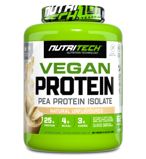 Nutritech Vegan Protein has been formulated as a premium-quality single-source protein, making use of natural pea isolate sourced from GMO-free golden peas grown in the USA, with 25g of protein per single serving (78%). An exceptional choice of protein by athletes and individuals following a vegan or dairy-free lifestyle, pea isolate is free from gluten, dairy, and lactose; is easily digestible; and is made using low-heat isolation to maximize the bioavailability of the protein.