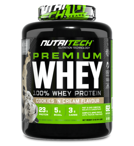 The Nutritech Premium Whey is formulated with a 23g dose of bioavailable protein sourced from grass-fed cows to promote weight loss, build lean muscle and strength, assist body toning, repair and reduce muscle tissue damage, and increase athletic performance.